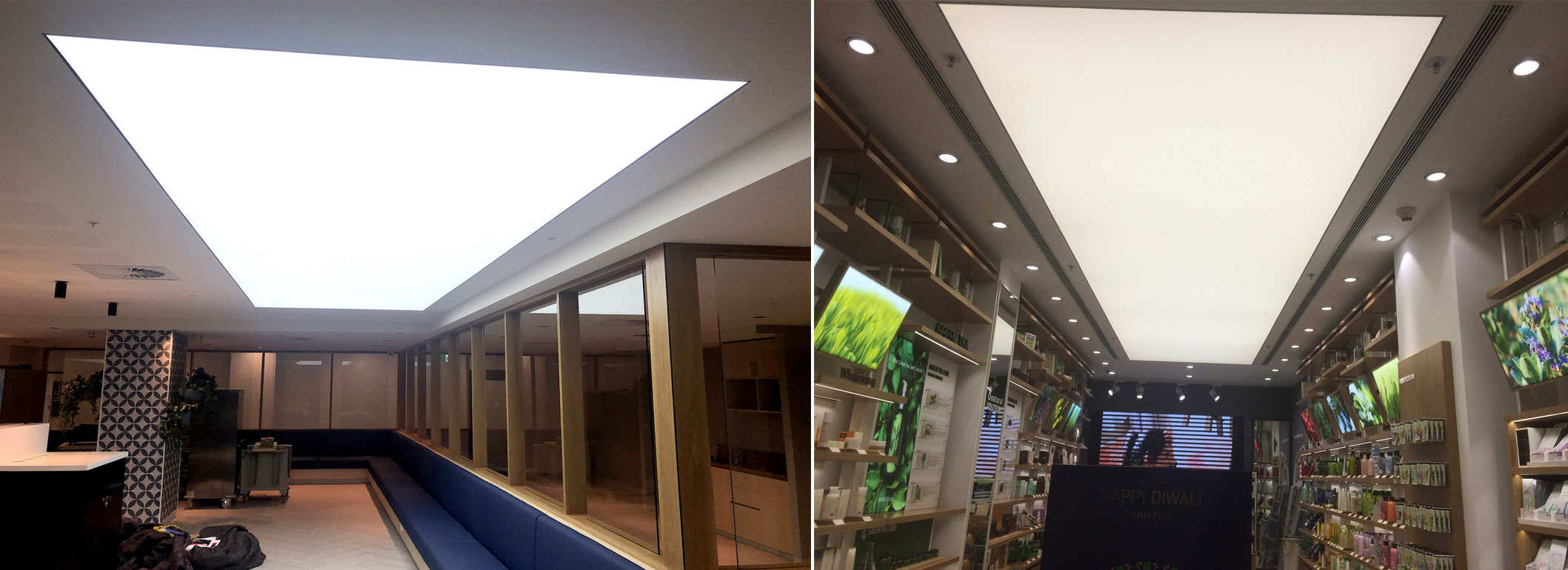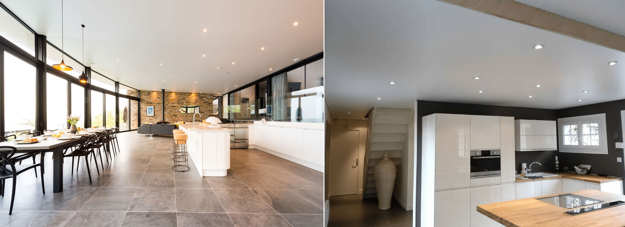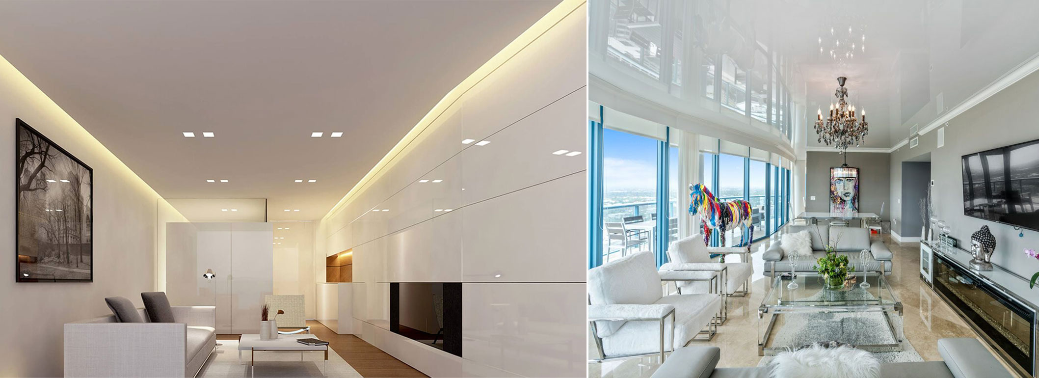 Tavanul extensibil poate fi montat in orice tip de incapere: spatiile comerciale, sali de clase, restaurante, hoteluri, spatiile rezidentiale, bucatarie, baie, living, dormitor. Poate fi montat peste tavanul existent care prezinta defecte, sau poate fi montat in baie sau bucatarie, intrucat nu imbiba mirosurile si nu formeaza igrasie.